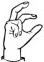На ћирилици написано ЛИДИЈА КУРМАЗОВИЋ састоји се из 16 слова [?]. Исписано ћириличном једноручном азбуком за глувонеме: